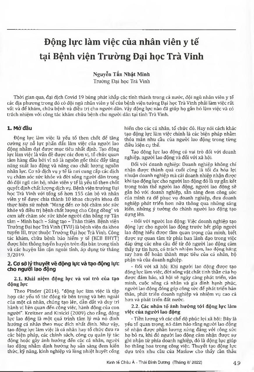 Động lực làm việc của nhân viên y tế tại Bệnh viện Trường Đại học Trà Vinh