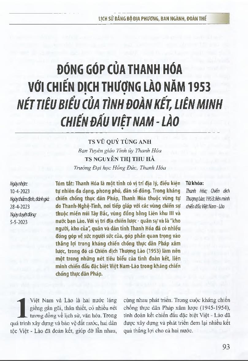 Đóng góp của Thanh Hóa với chiến dịch Thượng Lào năm 1953 nét tiêu biểu của tình đoàn kết, liên minh chiến đấu Việt Nam-Lào