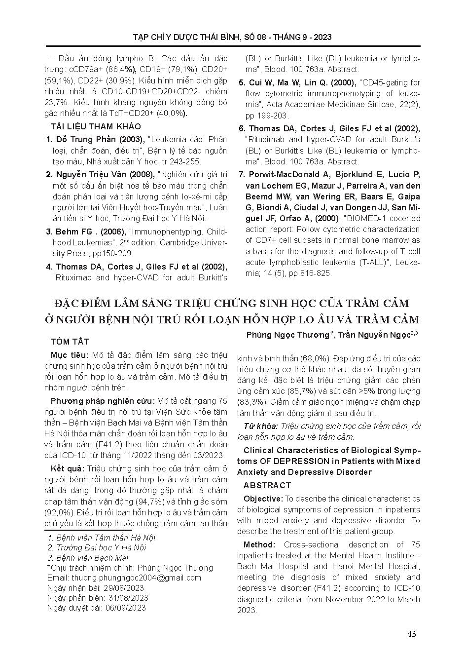 Đặc điểm lâm sàng triệu chứng sinh học của trầm cảm ở người bệnh nội trú rối loạn hỗn hợp lo âu và trầm cảm