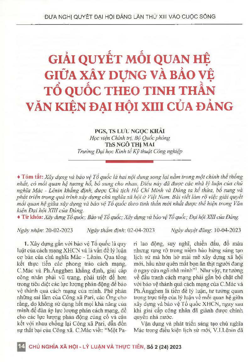 Giải quyết mối quan hệ giữa xây dựng và bảo vệ Tổ quốc theo tinh thần Văn kiện Đại hội XIII của Đảng