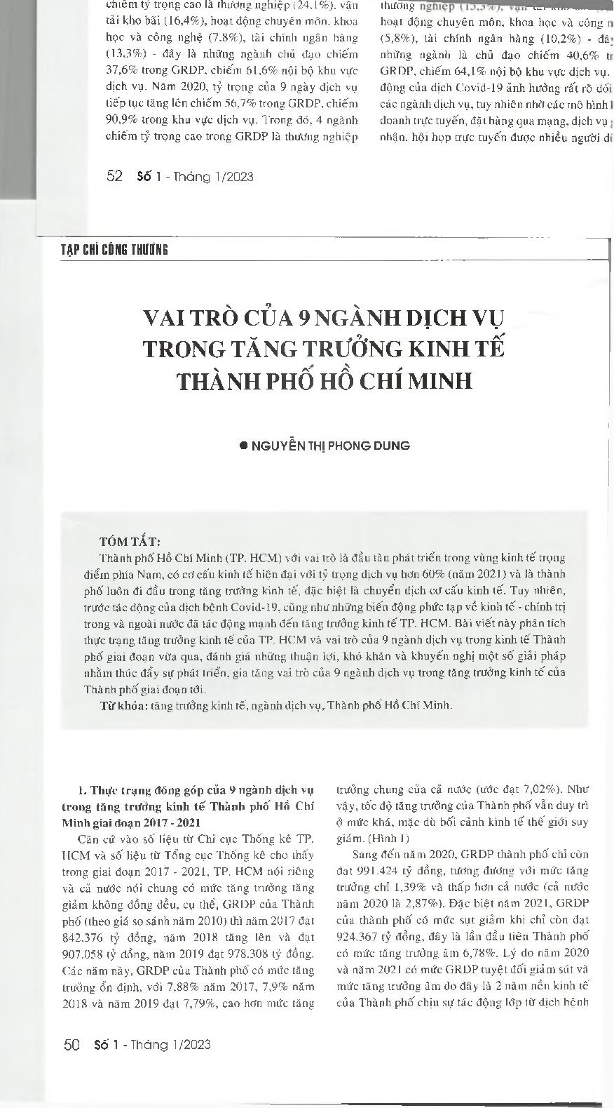 Vai trò của 9 ngành dịch vụ trong tăng trưởng kinh tế thành phố Hồ Chí Minh = The role of nine industries in the economic growth of Ho Chi Minh City