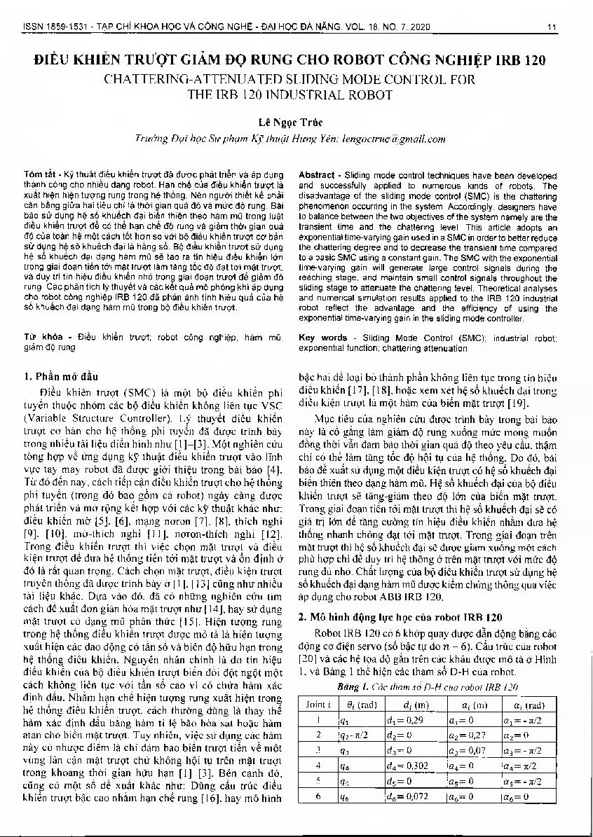 Điều khiển trượt giảm độ rung cho robot công nghiệp IRB 120 = Chattering-attenuated sliding mode control for the irb 120 industrial robot