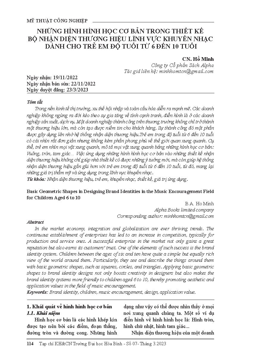 Những hình hình học cơ bản trong thiết kế bộ phận nhận diện thương hiệu lĩnh vực khuyến nhạc dành cho trẻ em độ tuổi từ 6 - 10 tuổi = Basic geometric shapes in designing brand identities in the music encouragement field for children aged 6 to 10