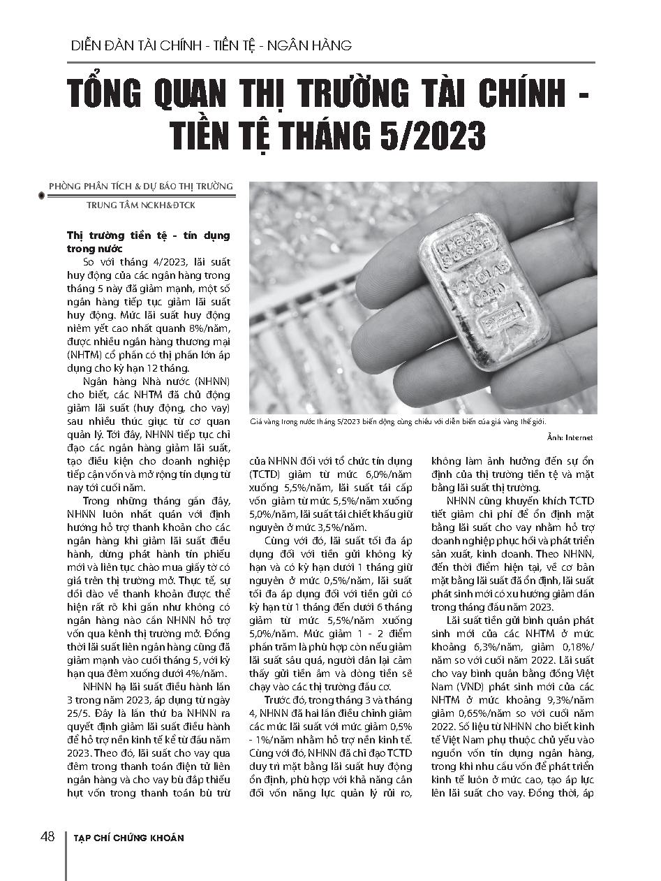 Tổng quan thị trường tài chính - tiền tệ tháng 5/2023