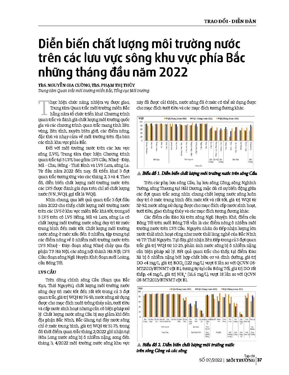 Diễn biến chất lượng môi trường nước trên các lưu vực sông khu vực phía Bắc những tháng đầu năm 2022