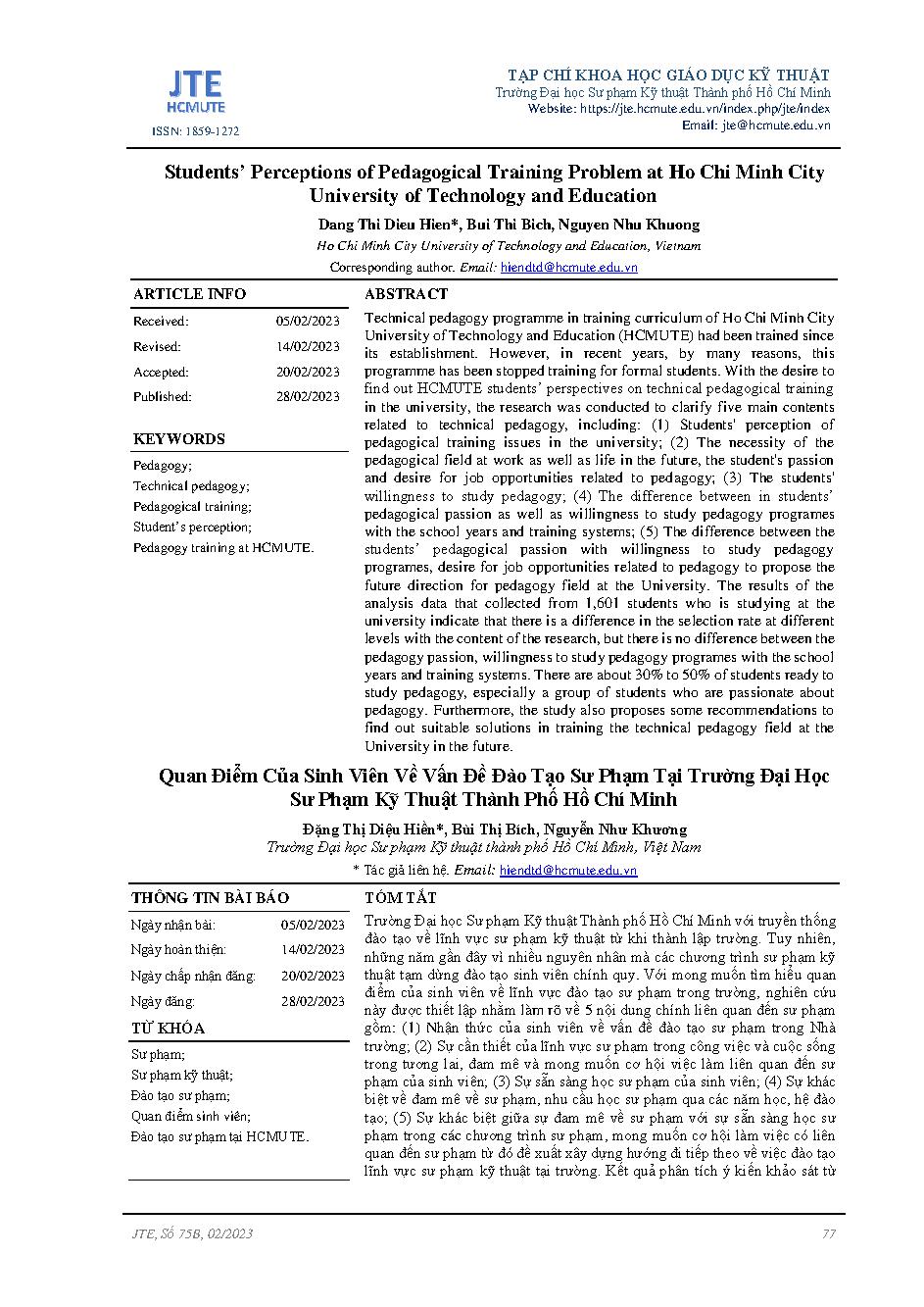 Quan điểm của sinh viên về vấn đề đào tạo sư phạm tại Trường Đại học Sư phạm Kỹ thuật thành phố Hồ Chí Minh