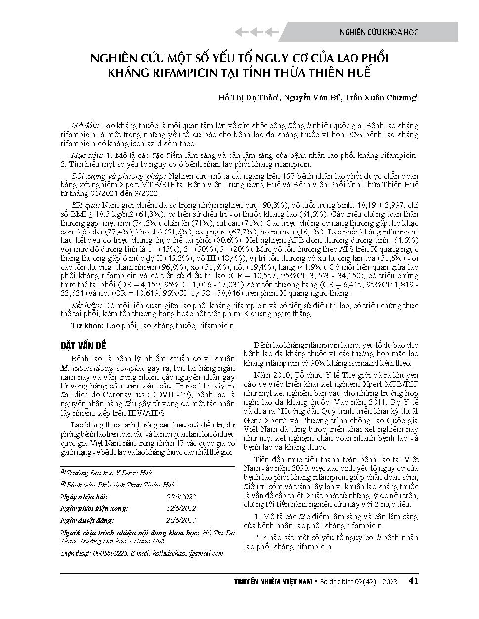 Nghiên cứu một số yếu tố nguy cơ của lao phổi kháng Rifampicin tại tỉnh Thừa Thiên Huế