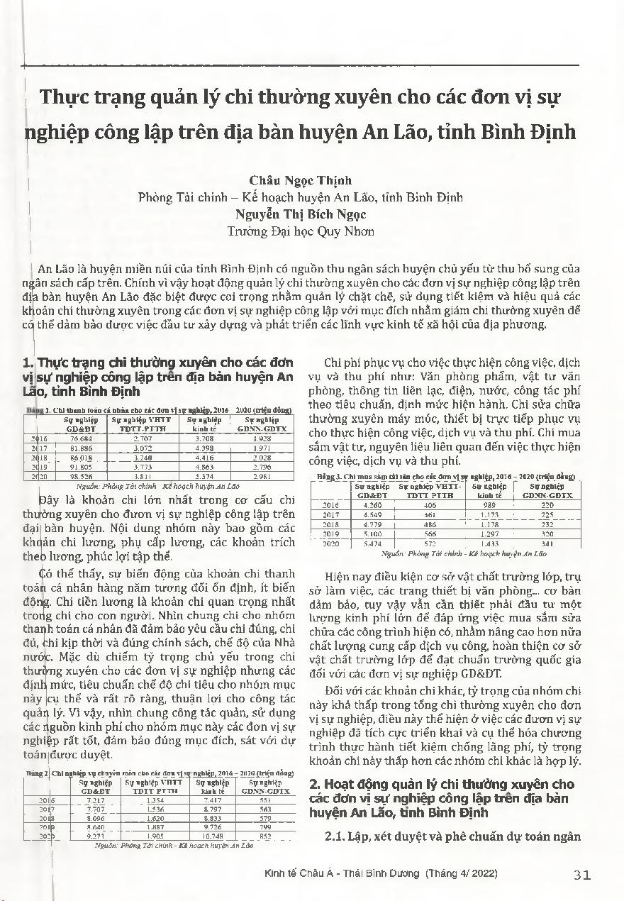 Thực trạng quản lý chi thường xuyên cho các đơn vị sự nghiệp công lập trên địa bàn huyện An Lão, tỉnh Bình Định