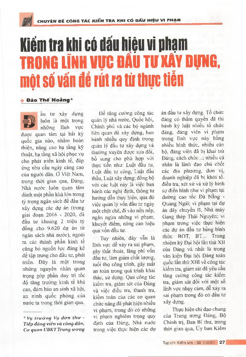 Kiểm tra khi có dấu hiệu vi phạm trong lĩnh vực đầu tư xây dựng, một số vấn đề rút ra từ thực tiễn