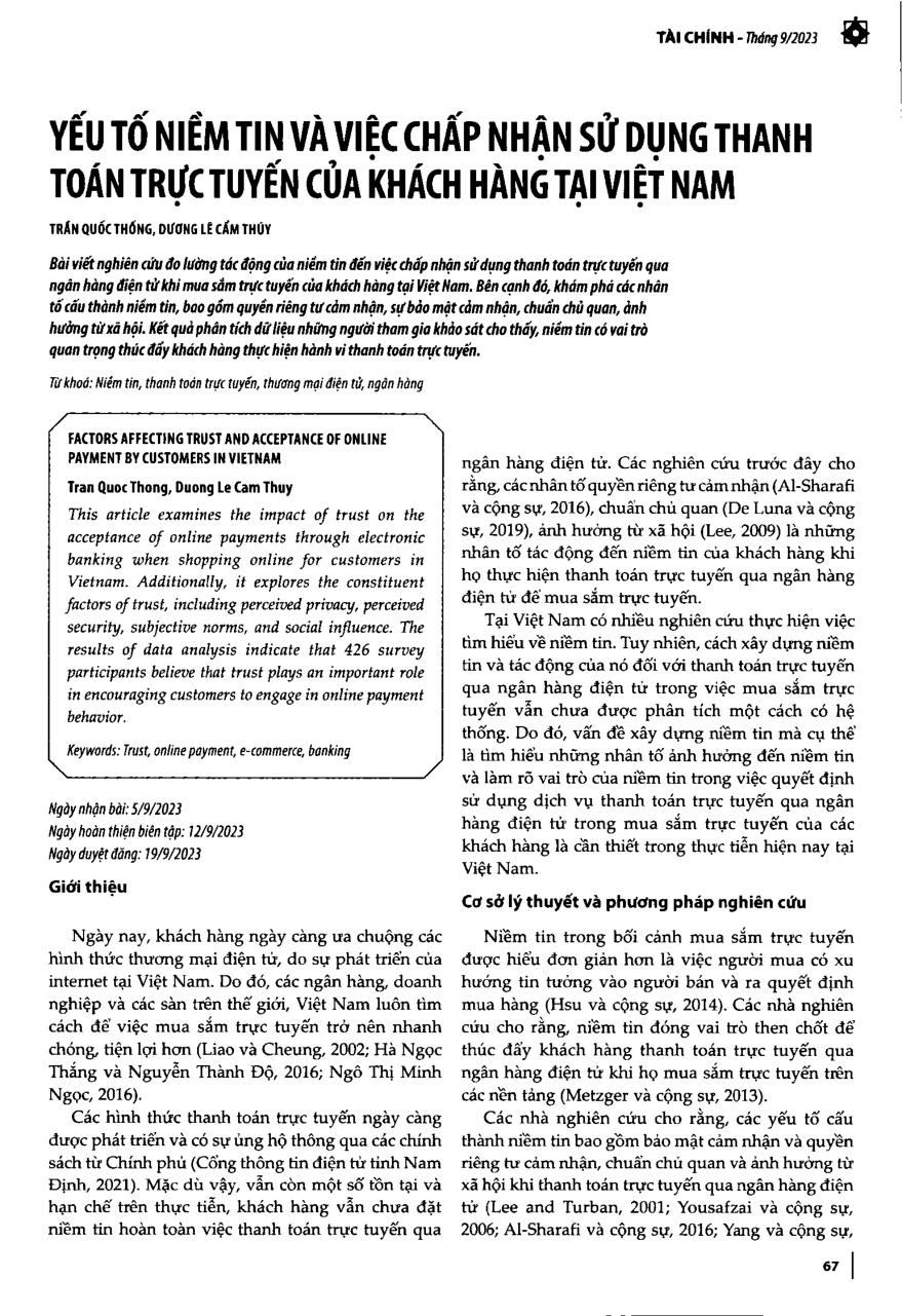 Yếu tố niềm tin và việc chấp nhận sử dụng thanh toán trực tuyến của khách hàng tại Việt Nam