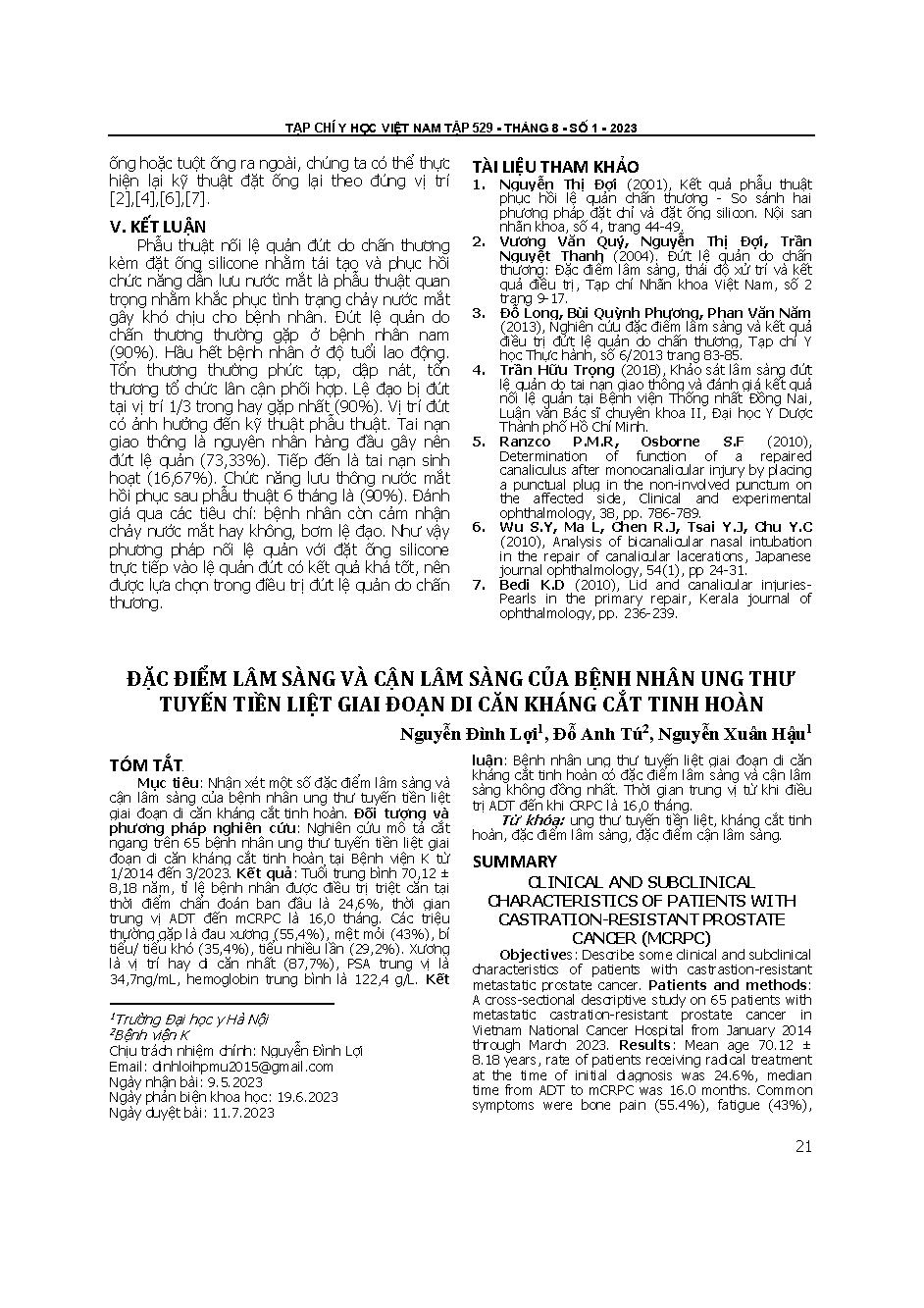 Đặc điểm lâm sàng và cận lâm sàng của bệnh nhân ung thư tuyến tiền liệt giai đoạn di căn kháng cắt tinh hoàn