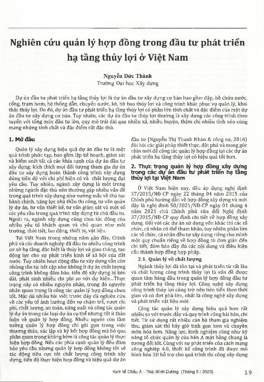 Nghiên cứu quản lý hợp đồng trong đầu tư phát triển hạ tầng thủy lợi ở Việt Nam