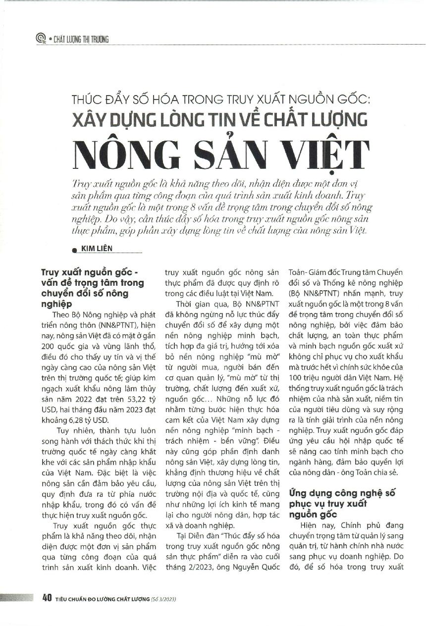 Thúc đẩy số hóa trong truy xuất nguồn gốc: Xây dựng lòng tin về chất lượng nông sản Việt = Promoting digitalization in traceability: Building trust in the quality of Vietnamese agricultural products