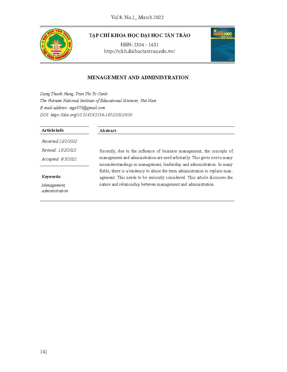 Quản lí và quản trị = Menagement and administration