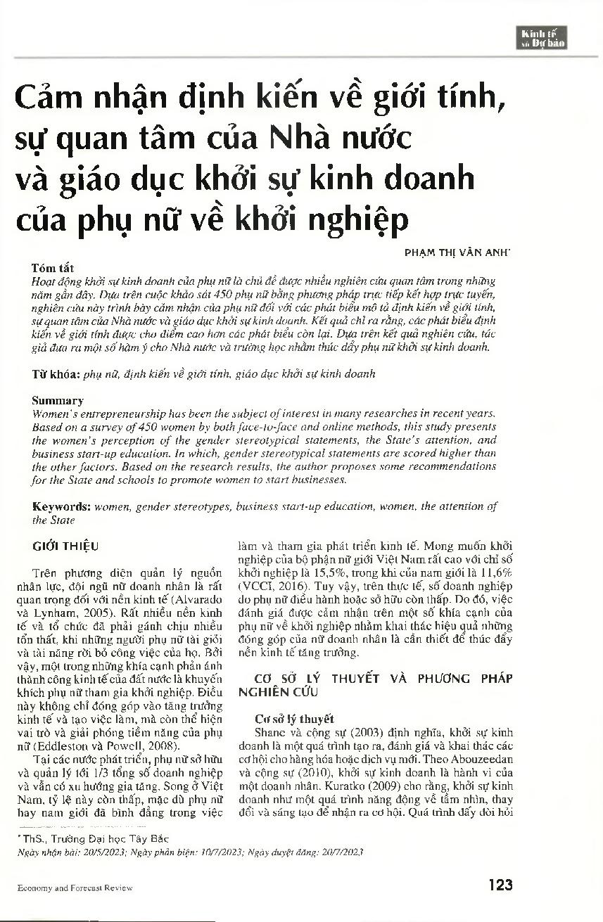 Cấm phận định kiến về giới tính, sự quan tâm của Nhà nước và giáo dục khởi sự kinh doanh của phụ nữ về khởi nghiệp