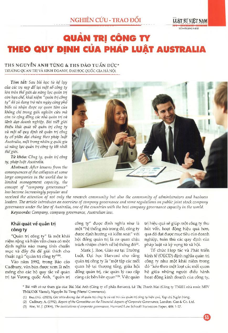 Quản trị công ty theo quy định của pháp luật Australia = Company governance in accordance with Australian law