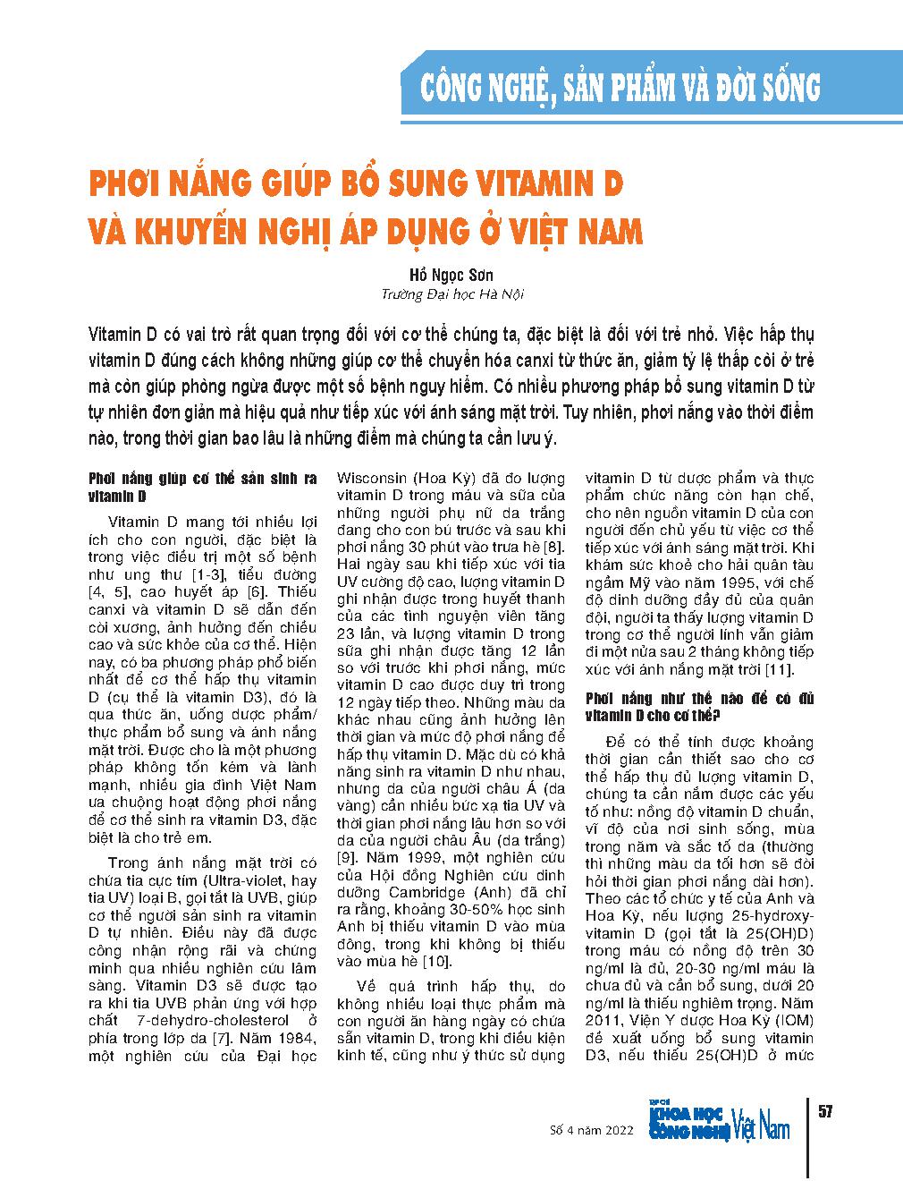 Phơi nắng giúp bổ sung vitamin D và khuyến nghị áp dụng ở Việt Nam