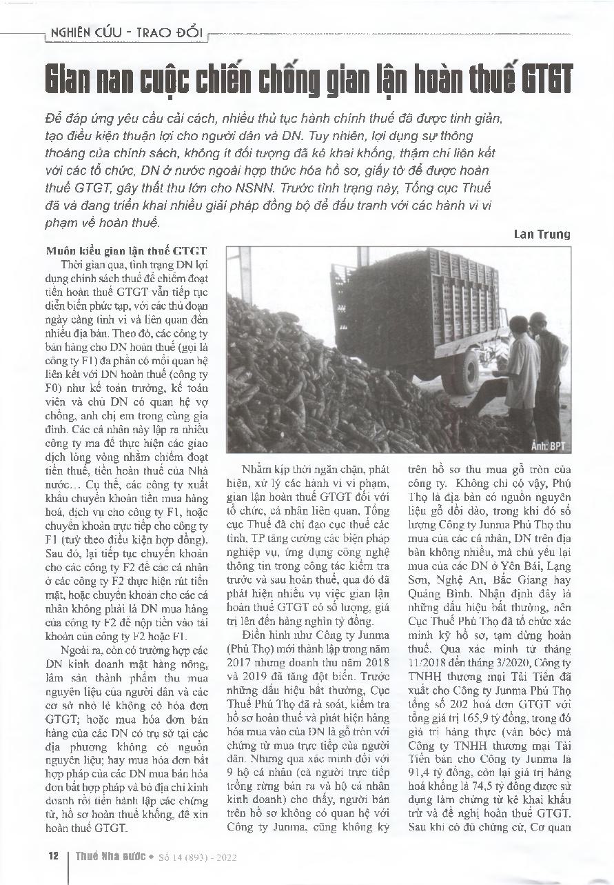Gian nan cuộc chiến chống gian lận hoàn thuế GTGT = Tough fight against VAT refund fraud