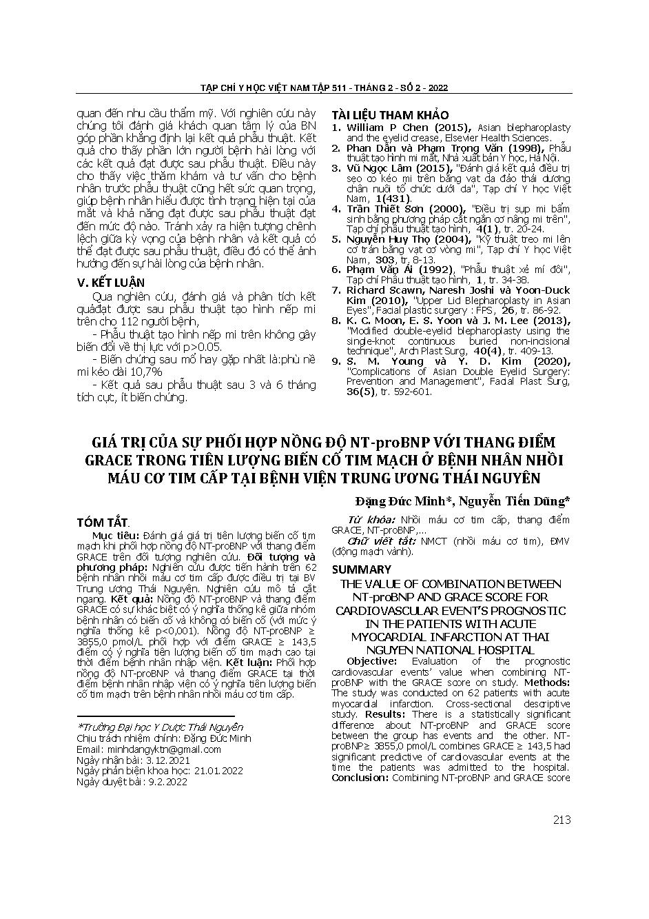 Giá trị của sự phối hợp nồng độ NT-proBNP với thang điểm GRACE trong tiên lượng biến cố tim mạch ở bệnh nhân nhồi máu cơ tim cấp tại Bệnh viện Trung ương Thái Nguyên = The value of combination between NT-proBNP and grace score for cardiovascular event’s p