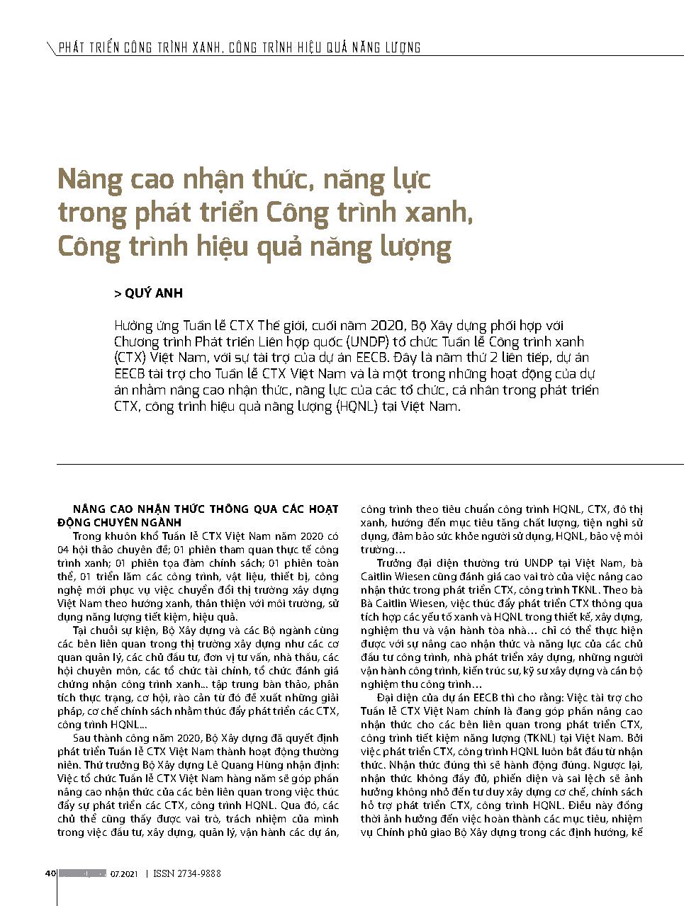 Nâng cao nhận thức, năng lực trong phát triển Công trình xanh, Công trình hiệu quả năng lượng