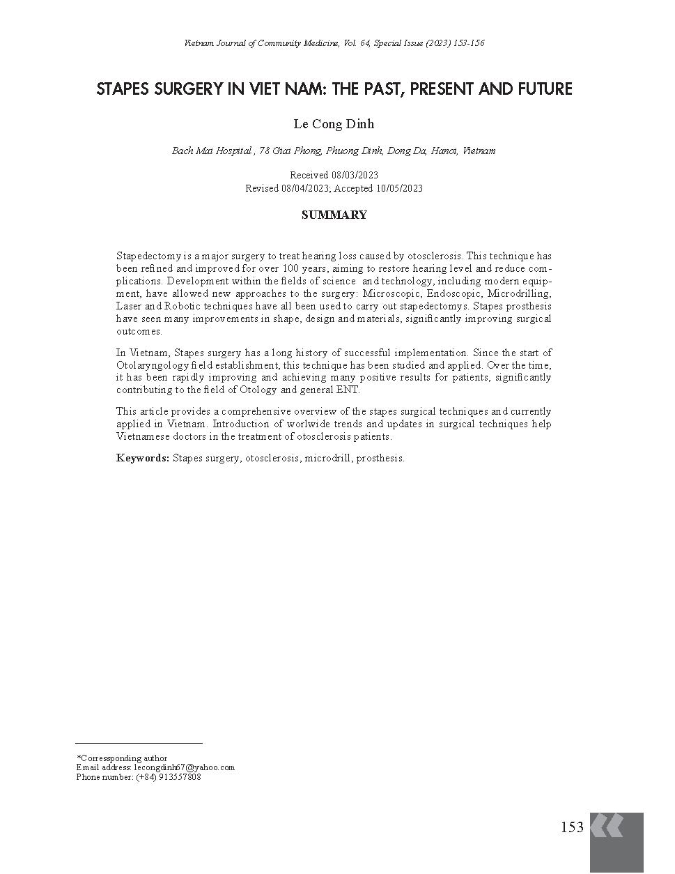 Phẫu thuật xương bàn đạp tại Việt Nam: Quá khứ, hiện tại và tương lai = Stapes surgery in Vietnam: The past, present and future