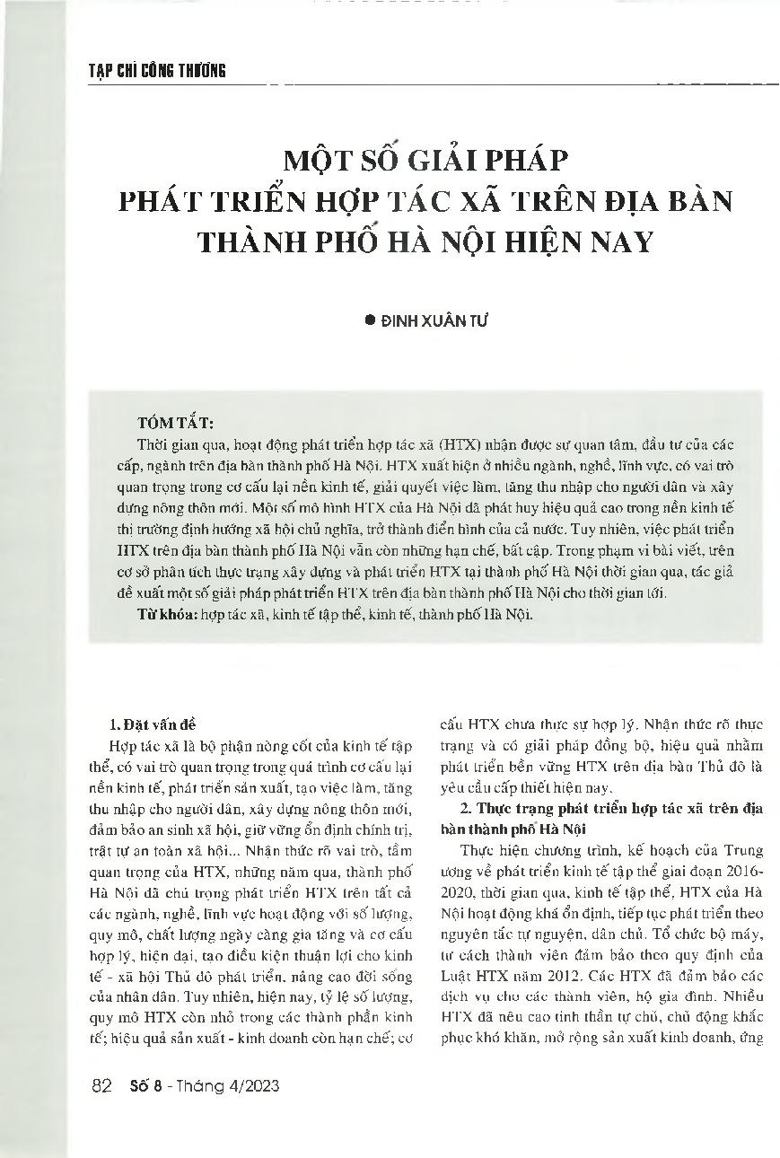Một số giải pháp phát triển hợp tác xã trên địa bàn thành phố Hà Nội hiện nay