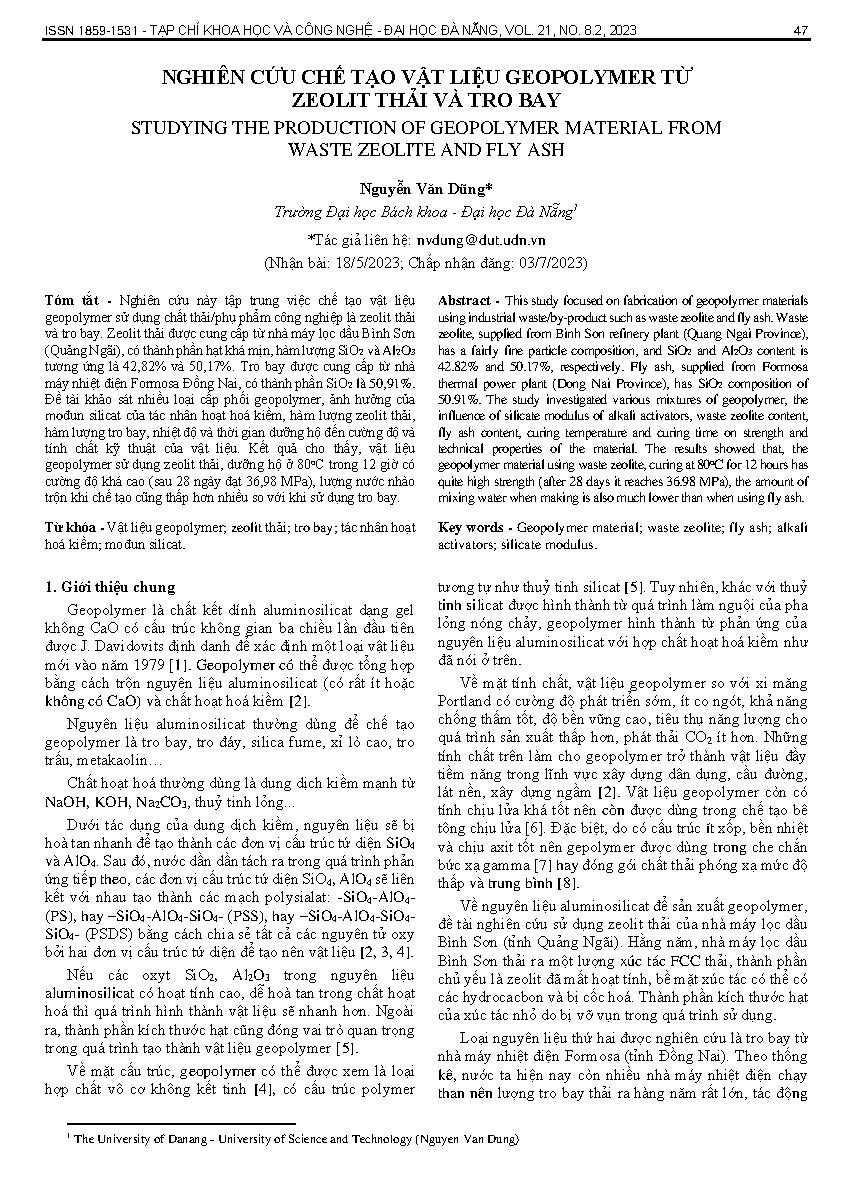 Nghiên cứu chế tạo vật liệu geopolymer từ zeolit thải và tro bay = Studying the production of geopolymer material from waste zeolite and fly ash