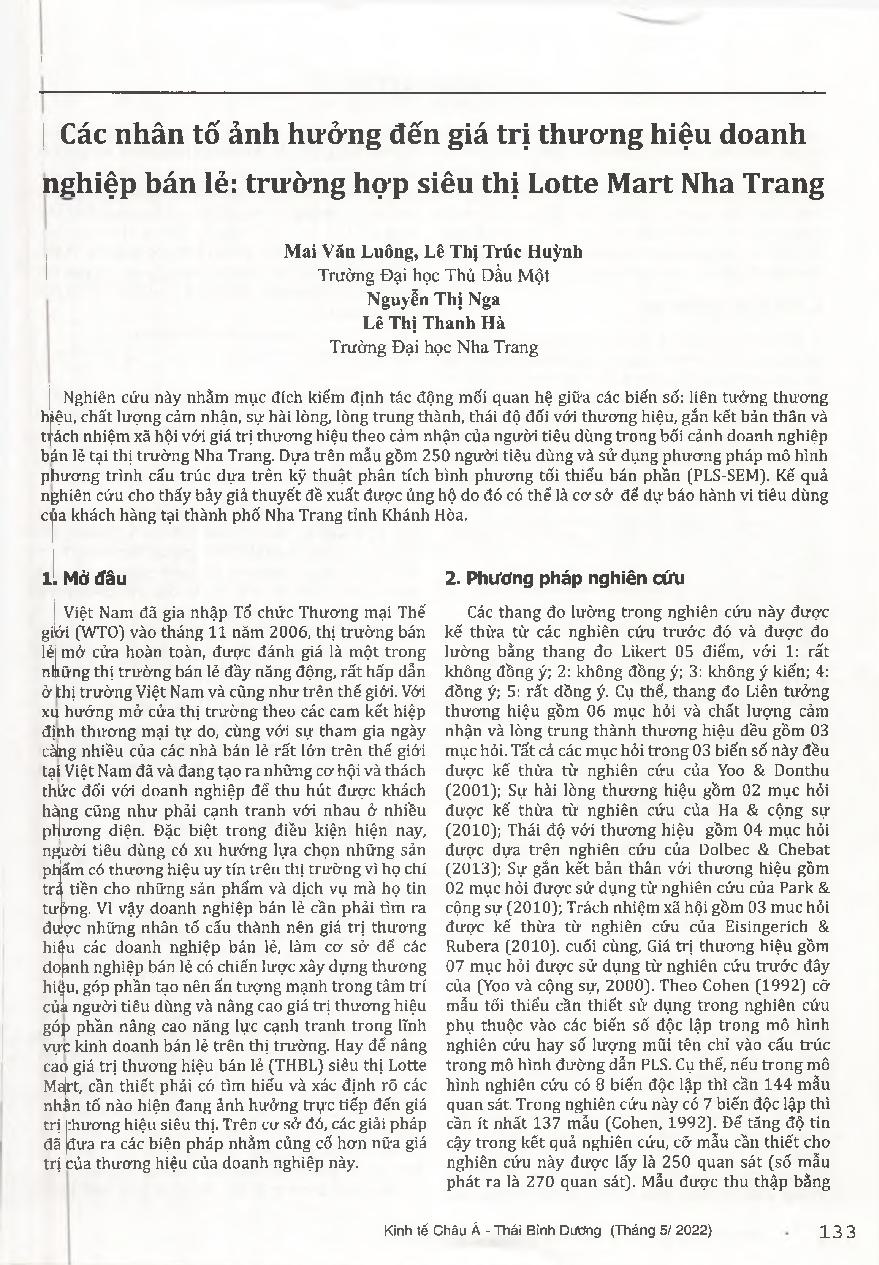 Các nhân tố ảnh hưởng đến giá trị thương hiệu doanh nghiệp bán lẻ: trường hợp siêu thị Lotte Mart Nha Trang