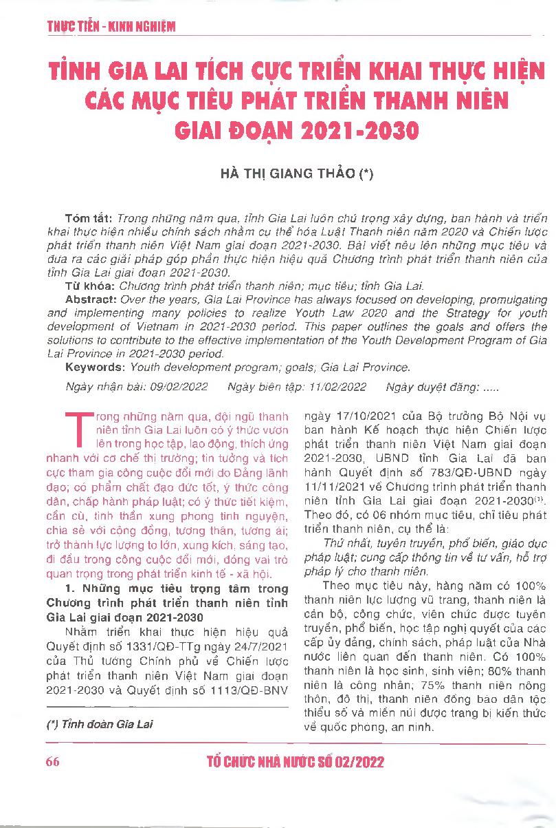 Tỉnh Gia Lai tích cực triển khai thực hiện các mục tiêu phát triển thanh niên giai đoạn 2021-2030 = Gia Lai province actively implements youth development goals for 2021 -2030 period