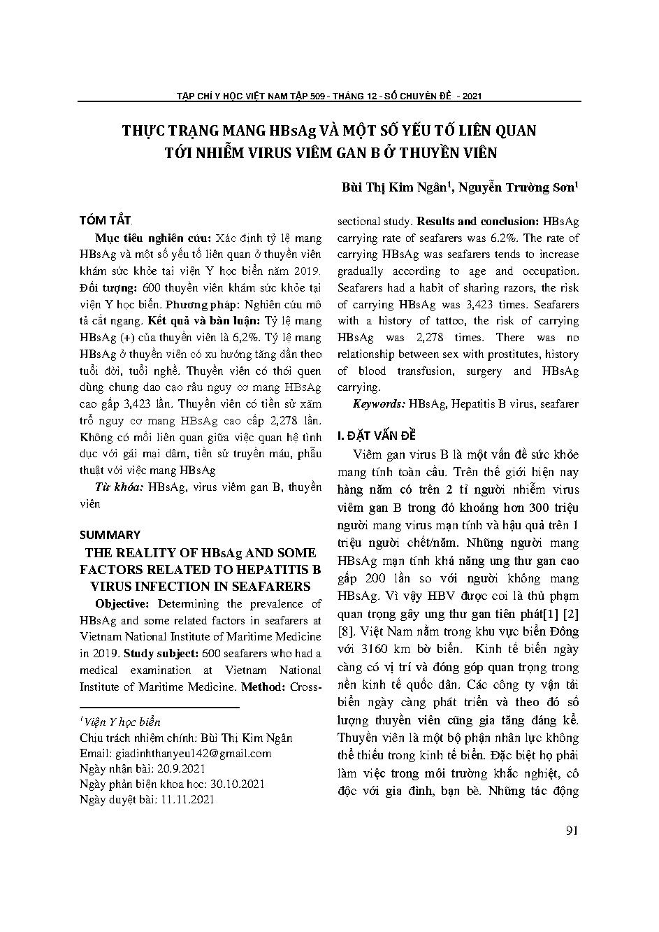 Thực trạng mang HBsAg và một số yếu tố liên quan tới nhiễm virus viêm gan B ở thuyền viên