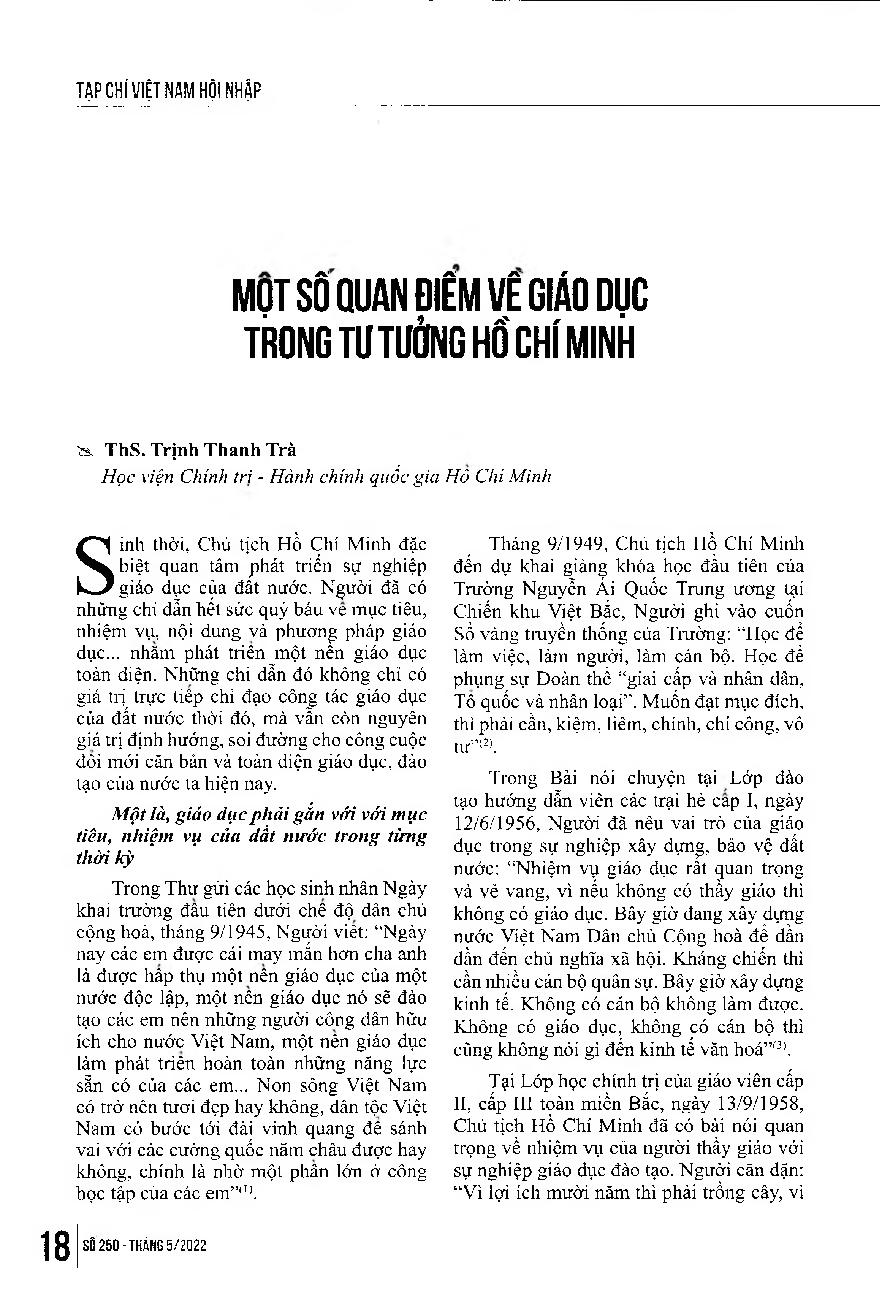 Một số quan điểm về giáo dục trong tư tưởng Hồ Chí Minh