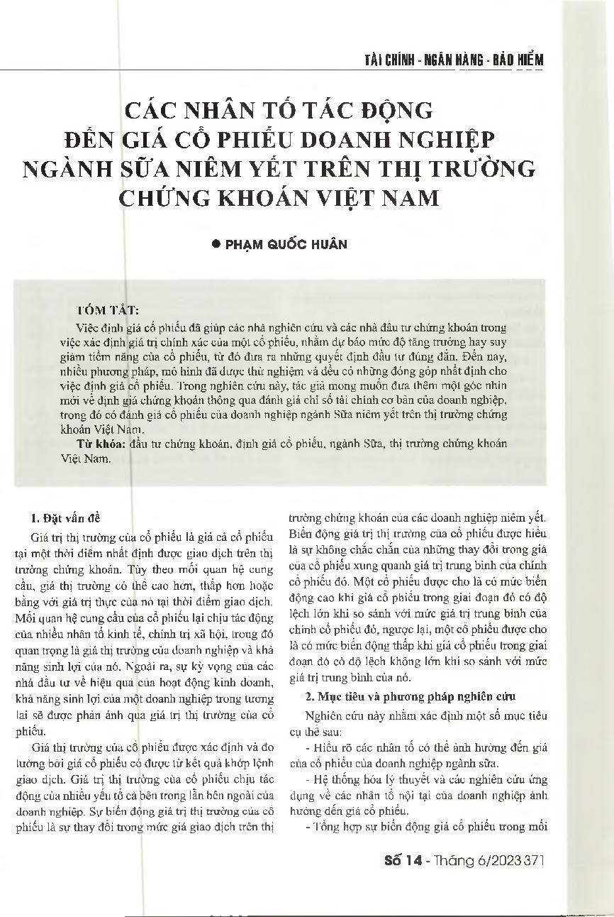 Các nhân tố tác động đến giá cổ phiếu doanh nghiệp ngành sữa niêm yết trên thị trường chứng khoán Việt Nam