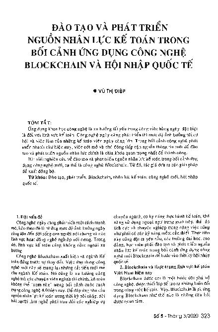 Đào tạo và phát triển nguồn nhân lực kế toán trong bổi cảnh ứng dụng công nghệ blockchain và hội nhập quốc tế = Developing and training human resources in accounting field in the context of the implementation of blockchain technology and Vietnam's international integration process
