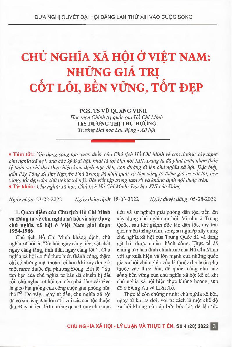 Chủ nghĩa xã hội ở Việt Nam: những giá trị cốt lõi, bền vững, tốt đẹp = Socialism in Vietnam: the core, sustainable, and noble values