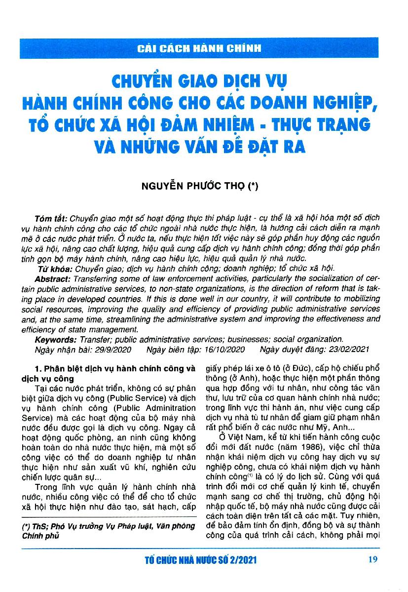 Chuyển giao dịch vụ hành chính công cho các doanh nghiệp, tổ chức xã hội đảm nhiệm - thực trạng và những vấn đề đặt ra
