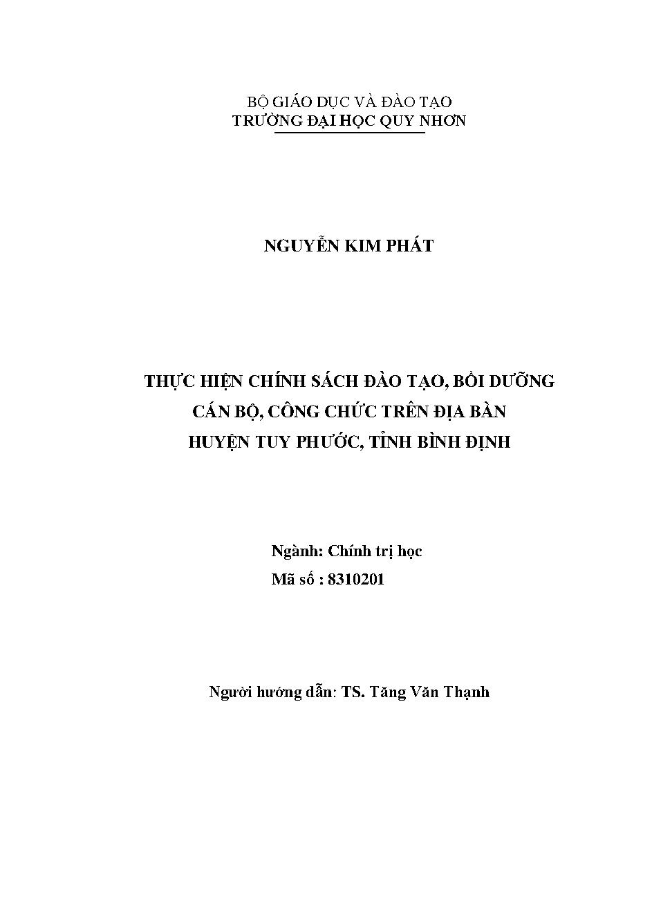 Thực hiện chính sách đào tạo, bồi dưỡng cán bộ, công chức trên địa bàn huyện Tuy Phước, tỉnh Bình Định