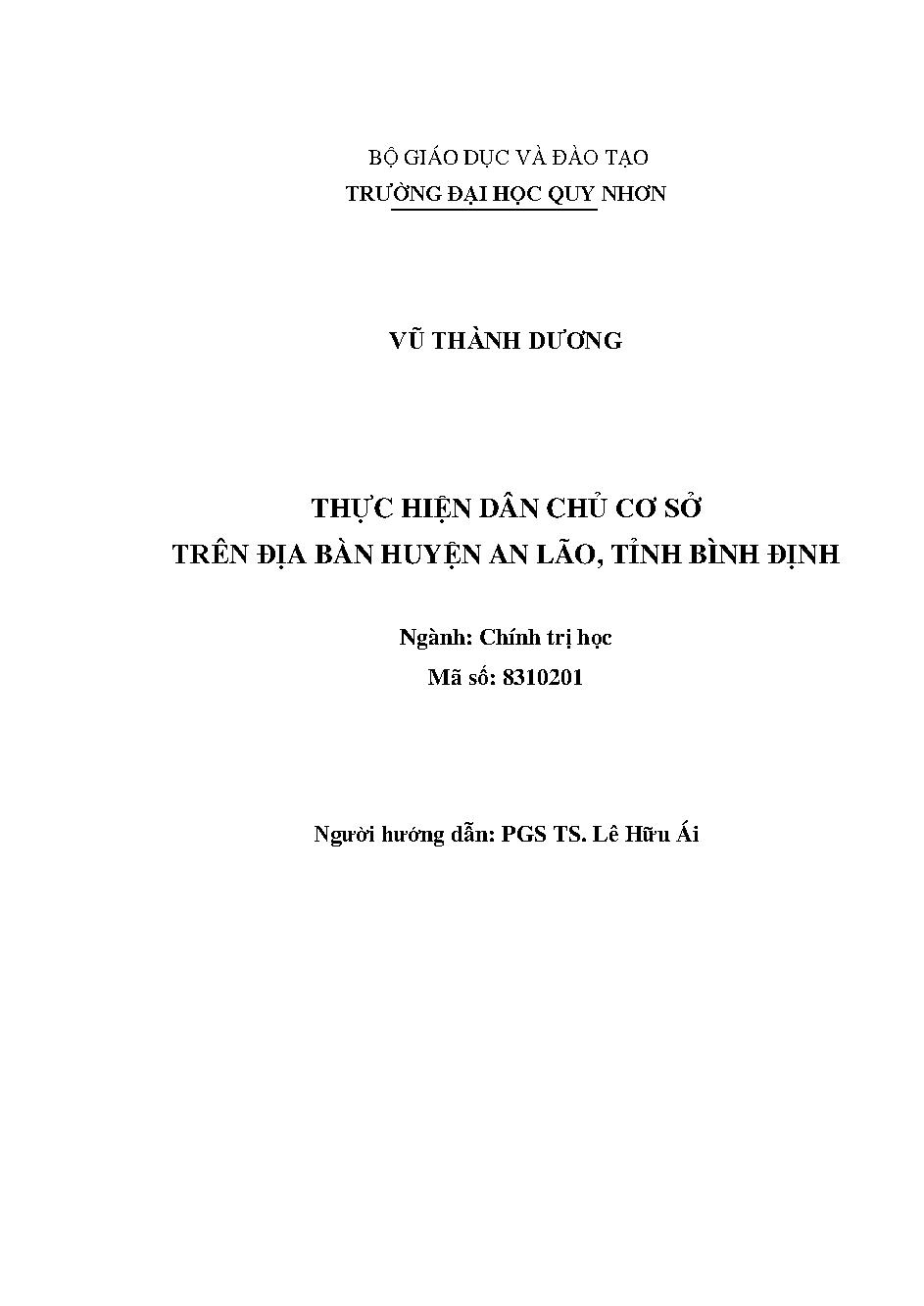 Thực hiện dân chủ cơ sở trên địa bàn huyện An Lão, tỉnh Bình Định