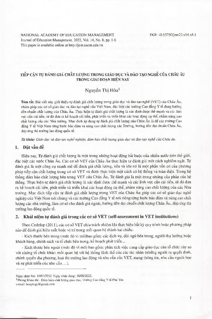 Tiếp cận tự đánh giá chất lượng trong giáo dục và đào tạo nghề của châu Âu trong giai đoạn hiện nay = Approach to quality self-assessment in European education and training in the current context