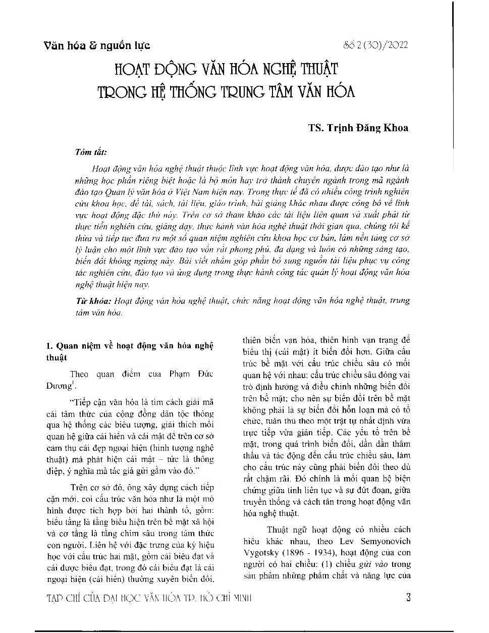 Hoạt động văn hóa nghệ thuật trong hệ thống trung tâm văn hóa = Artistic cultural activities in culture center system