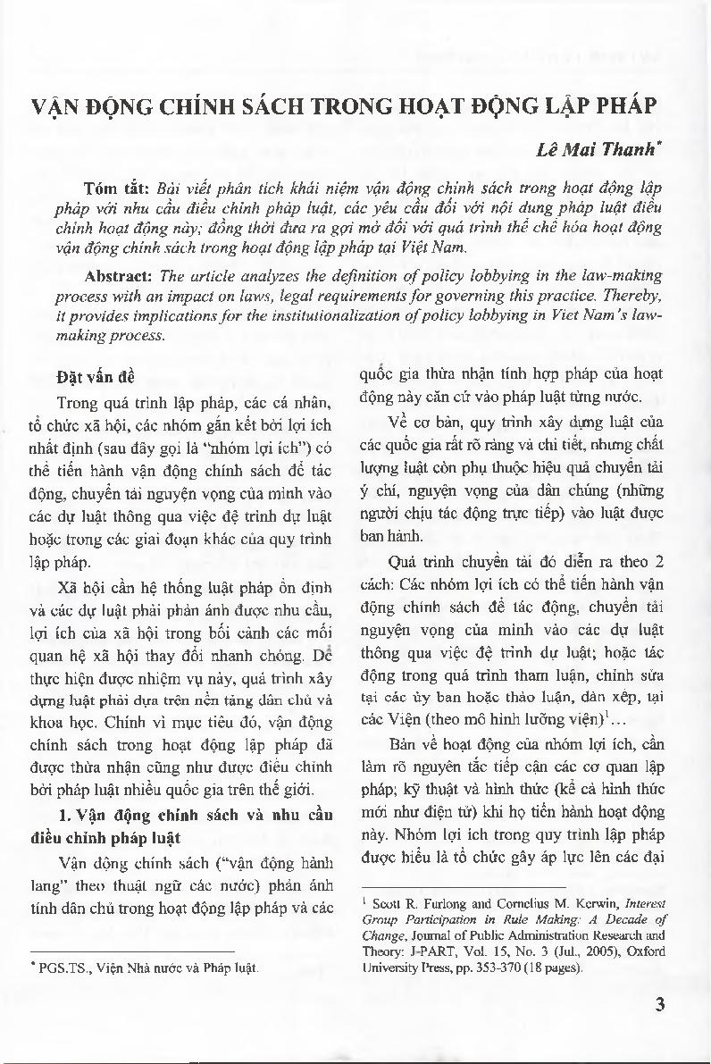 Vận động chính sách trong hoạt động lập pháp = Policy Lobbying in the Law-Making Process