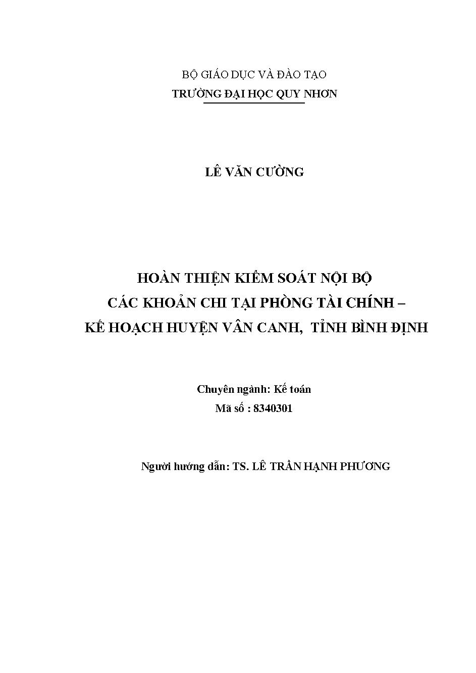 Hoàn thiện kiểm soát nội bộ các khoản chi tại phòng Tài chính - Kê hoạch huyện Vân Canh, tỉnh Bình Định
