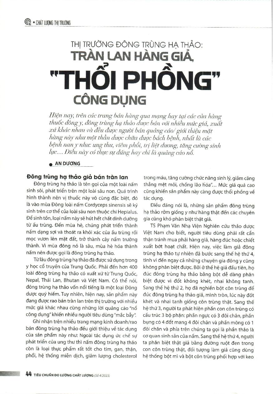 Thị trường đông trùng hạ thảo: Tràn lan hàng giả, "thổi phổng'' công dụng = Cordyceps market: Fake products are rampant, "exaggerating" their uses