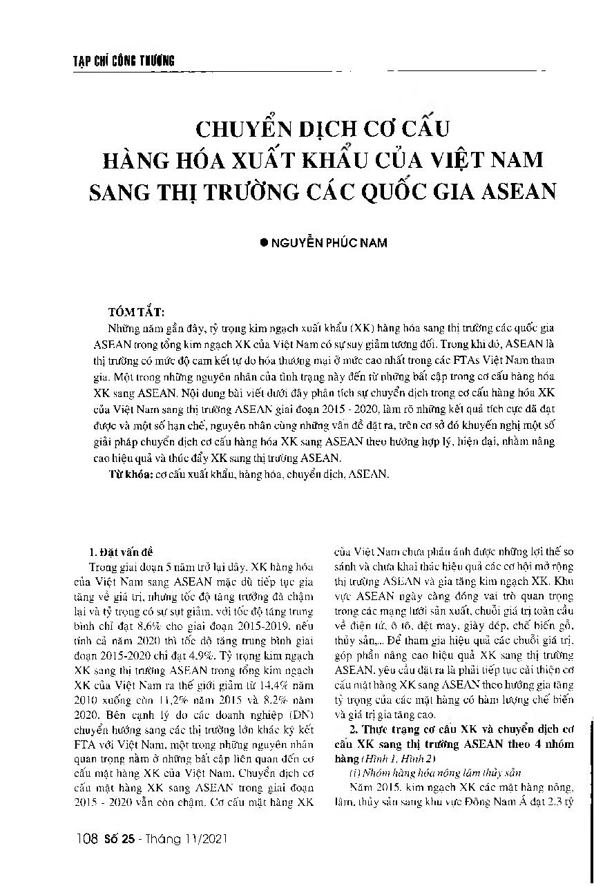 Chuyển dịch cơ cấu mặt hàng xuất khẩu sang thị trường ASEAN = The restructuring of Vietnam's exports to ASEAN markets
