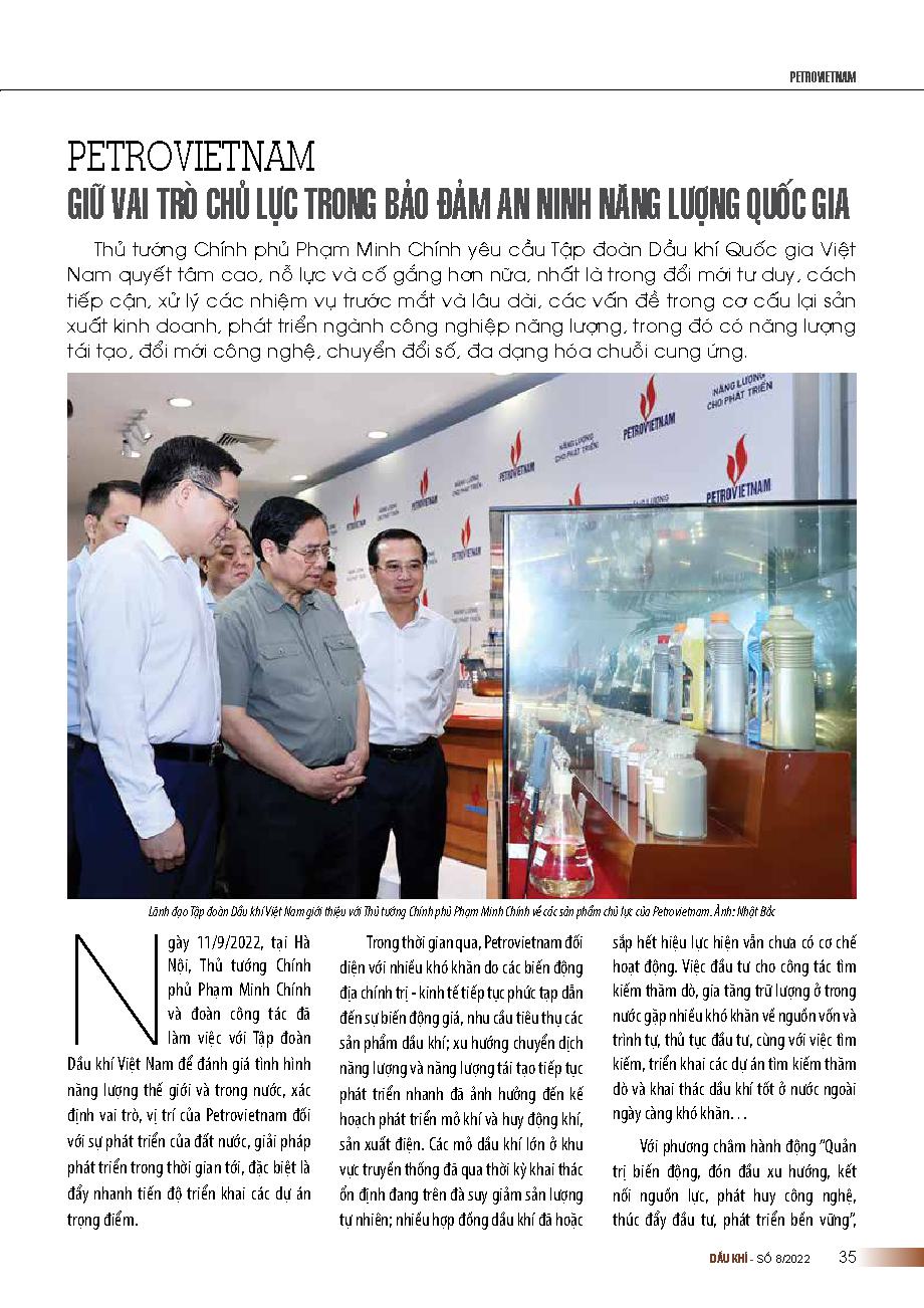 Petrovietnam giữ vai trò chủ lực trong bảo đảm an ninh năng lượng quốc gia = Petrovietnam plays a key role in ensuring national energy security