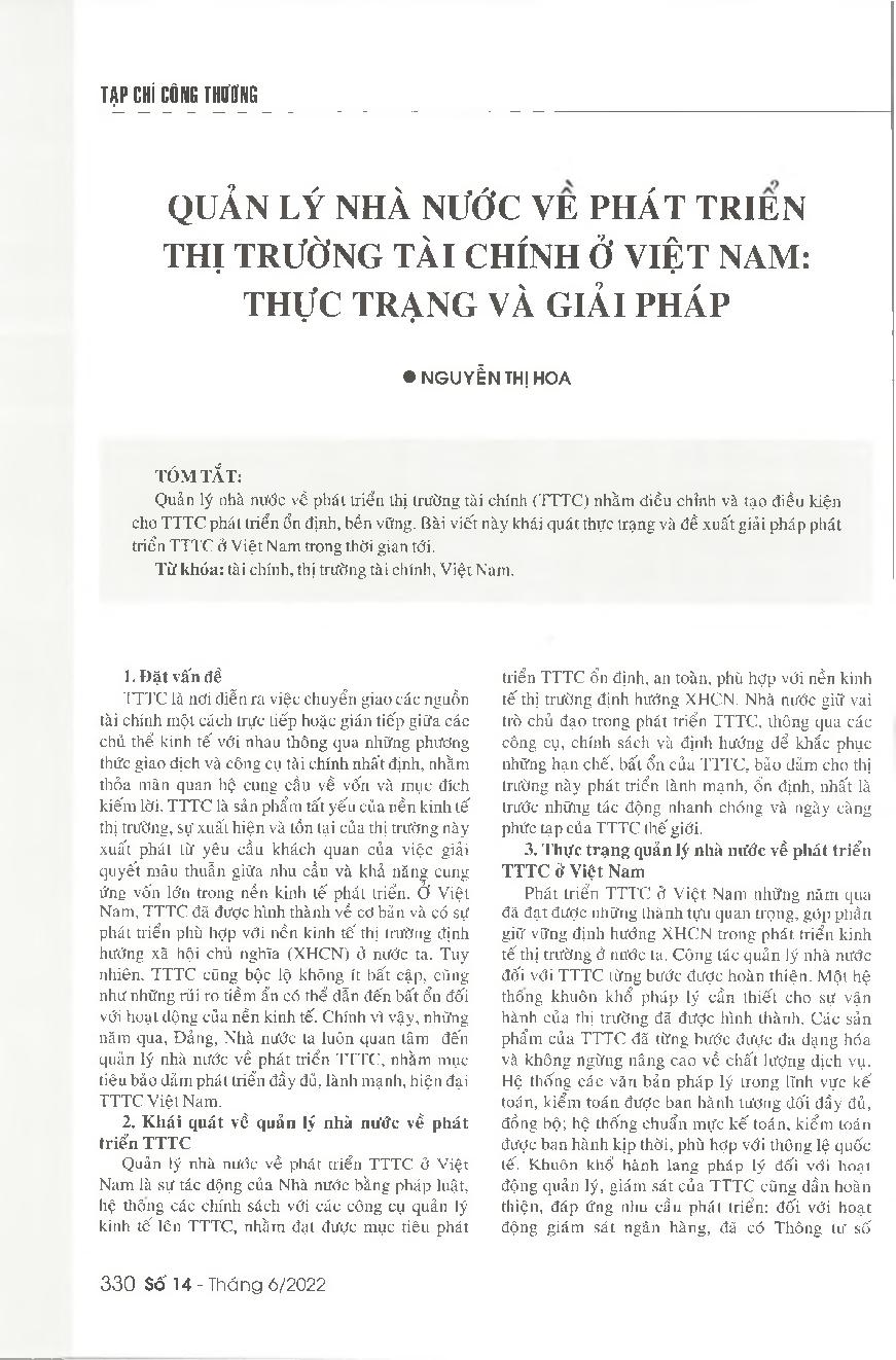 Quản lý nhà nước về phát triển thị trường tài chính ở Việt Nam - Thực trạng và giải pháp = The socialist orientation in the development of Vietnam&; 39;s financial market - Current situation and solutions