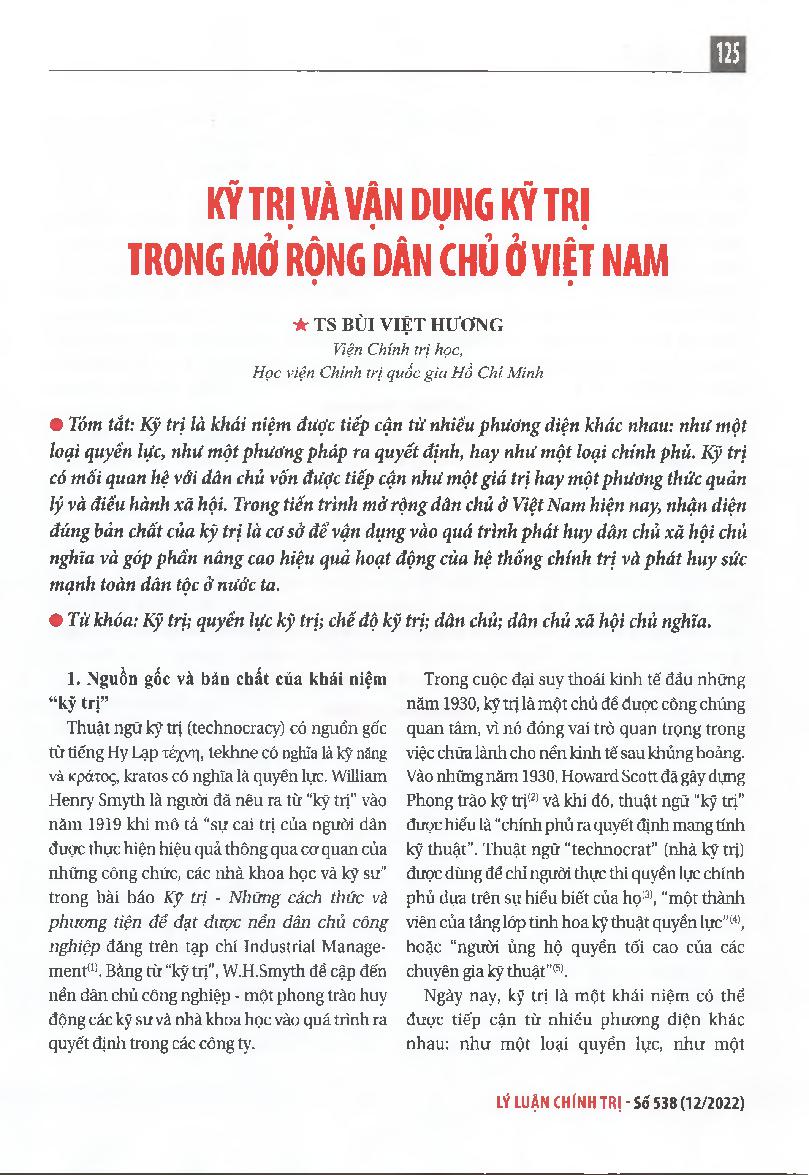Kỹ trị và vận dụng kỹ trị trong mở rộng dân chủ ở Việt Nam = Technocracy and its application in the expansion of democracy in Vietna