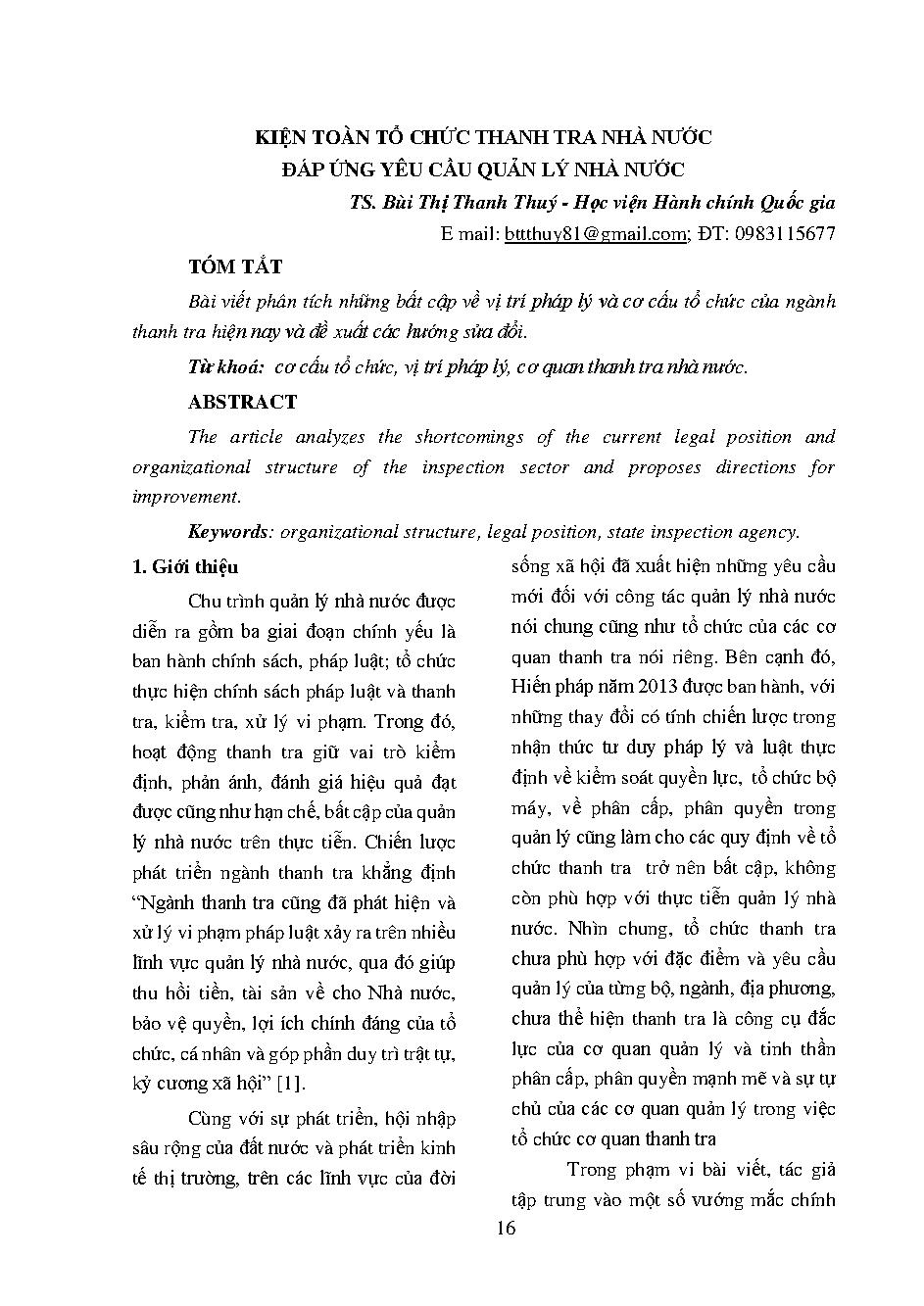 Kiện toàn tổ chức thanh tra nhà nước đáp ứng yêu cầu quản lý nhà nước