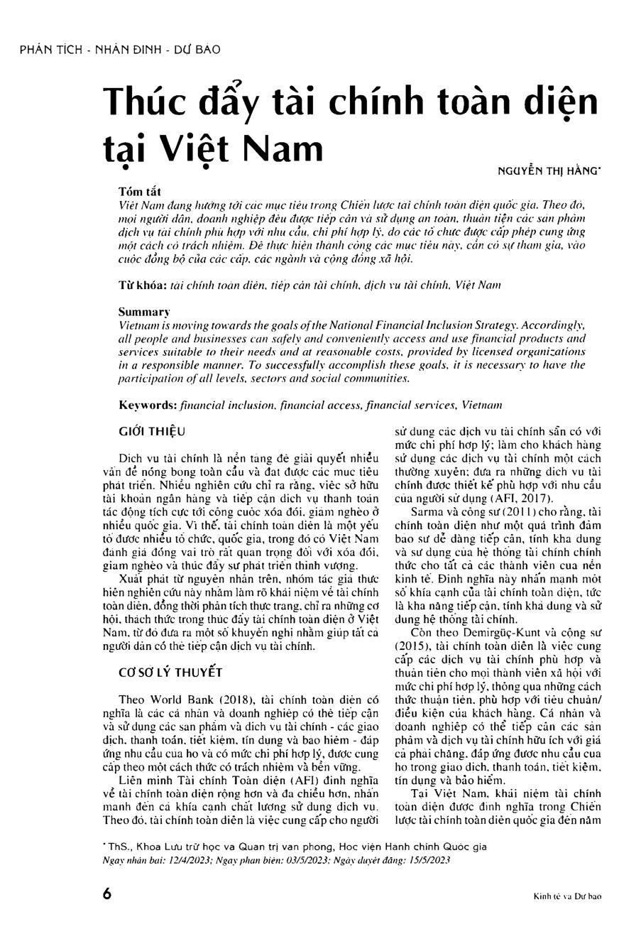 Thúc đẩy tài chính toàn diện tại Việt Nam