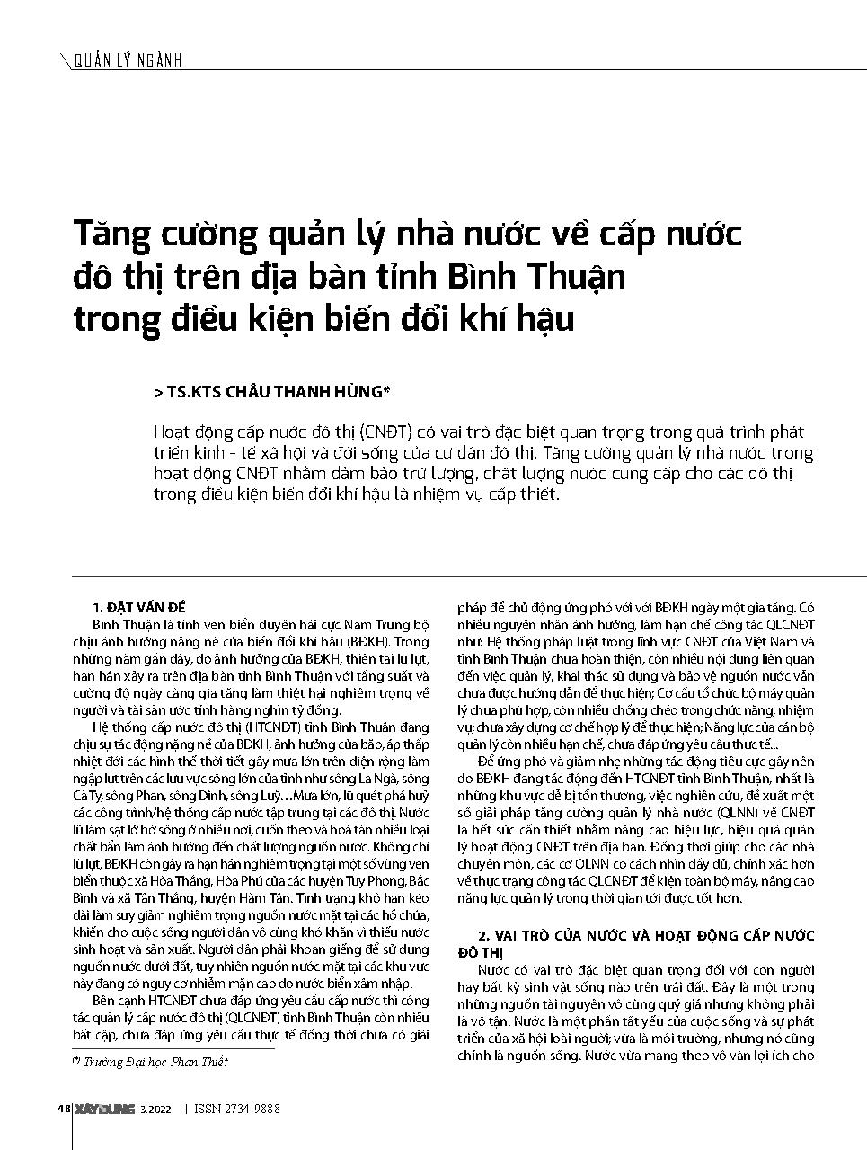 Tăng cường quản lý nhà nước về cấp nước đô thị trên địa bàn tỉnh Bình Thuận trong điều kiện biến đổi khí hậu