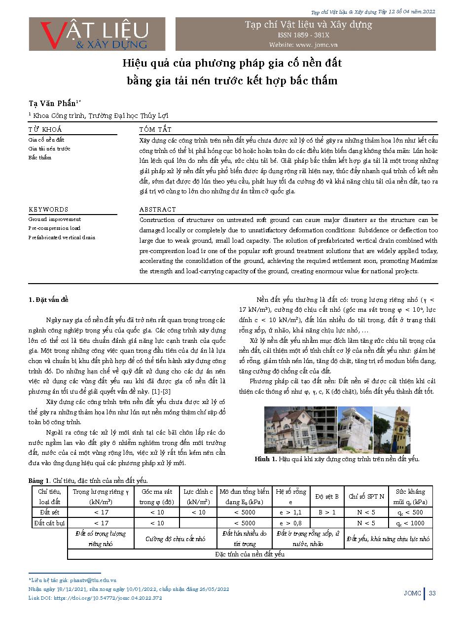 Hiệu quả của phương pháp gia cố nền đất bằng gia tải nén trước kết hợp bấc thấm